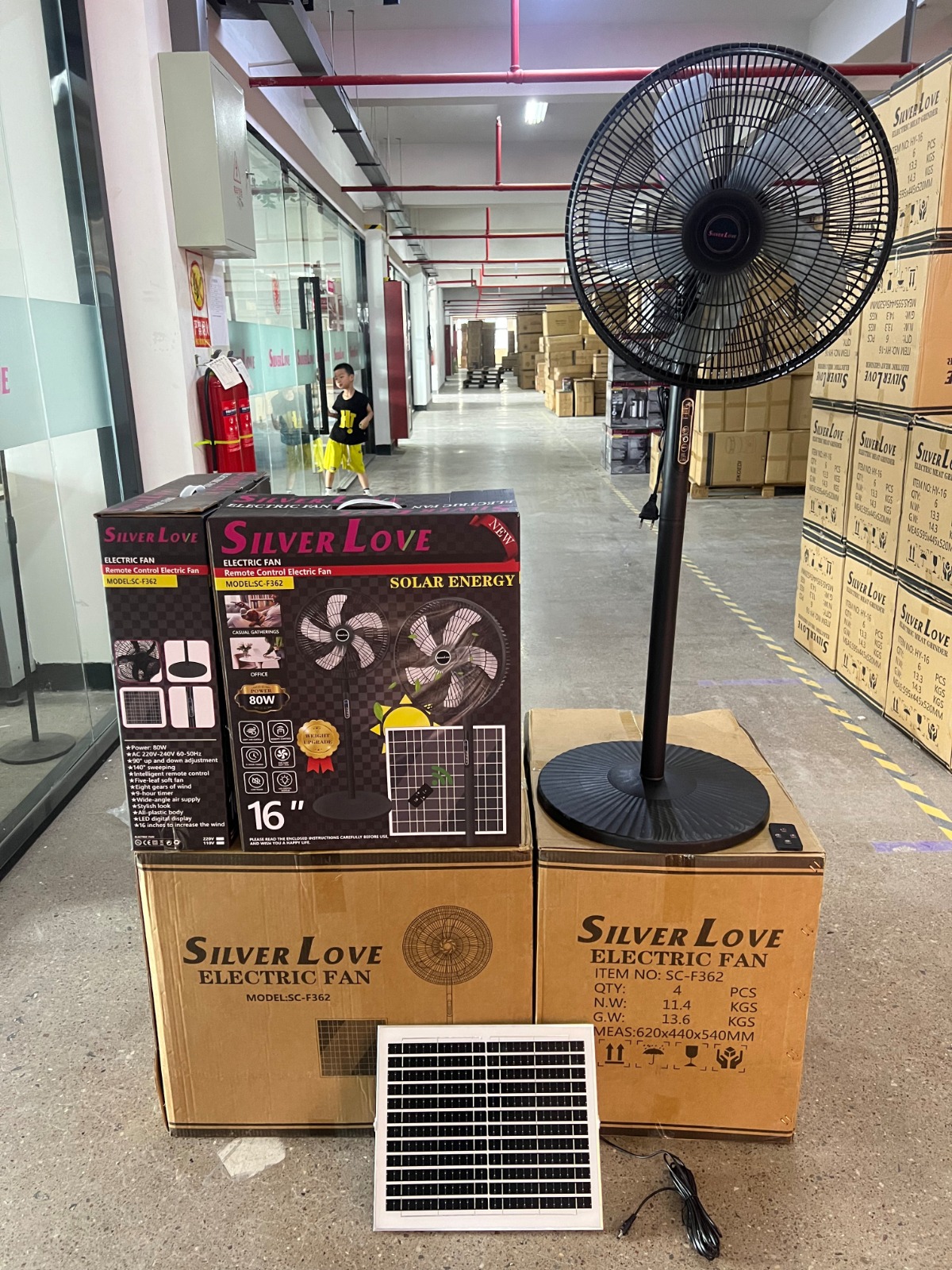 | Style: solar model, 3 key gears + remote control Power: 80W (actually 18-20W) Voltage: AC220-240V 50/60hz Gear: button 3 gears + remote control Motor: 555 DC pure copper motor Single weight:3.4 kg Total height:115 cm Material: plastic net/plastic fan blade Configuration: black + heavy base Outer box size: 44.7*55.4*44.7 cm |